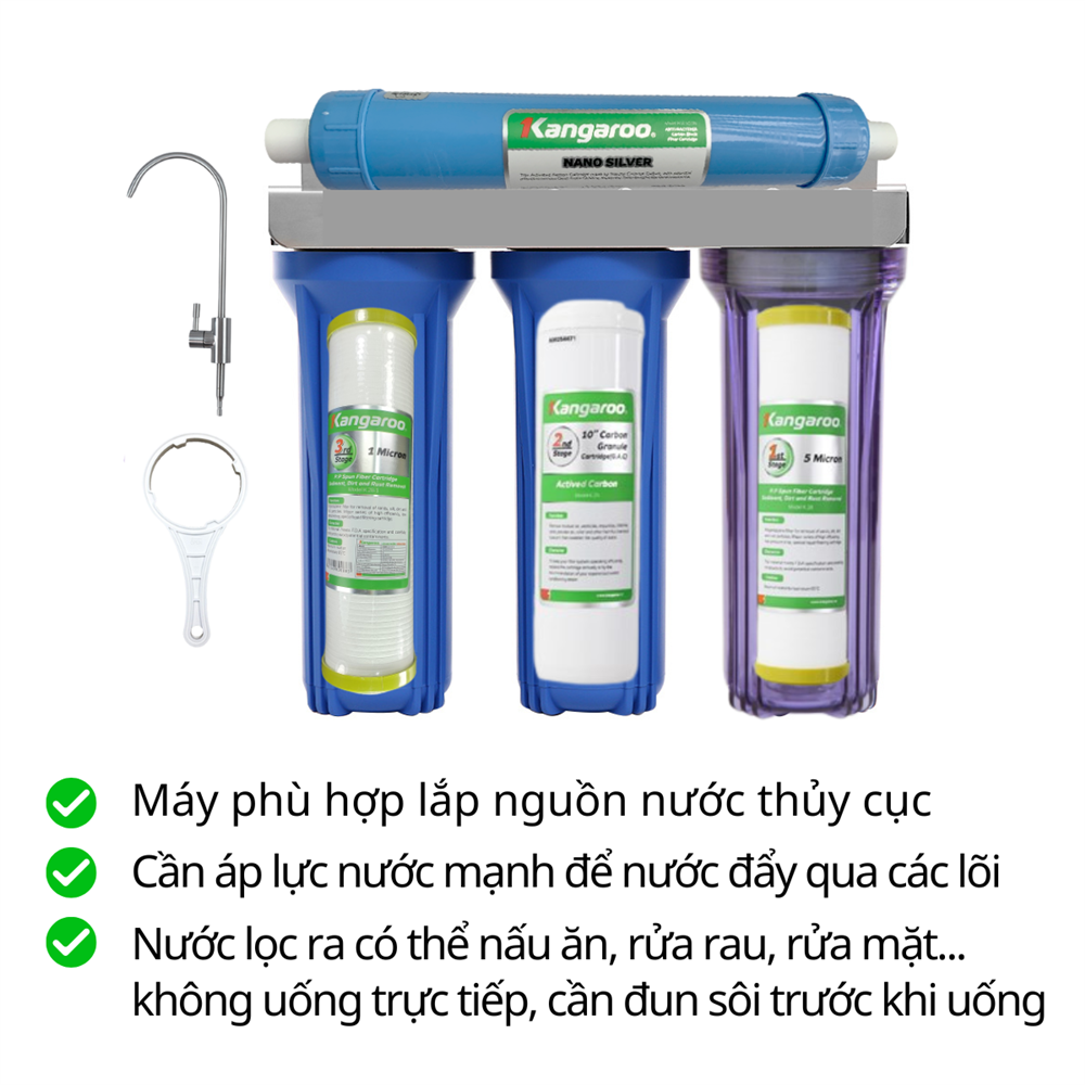 | Chức năng | Tạo nước nấu ăn, sinh hoạt (không uống trực tiếp, cần đun sôi) |