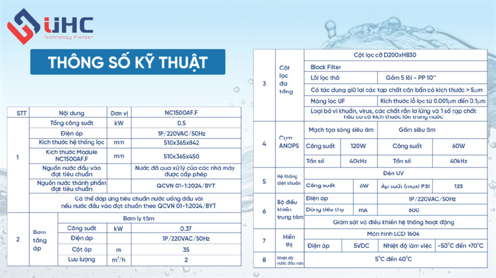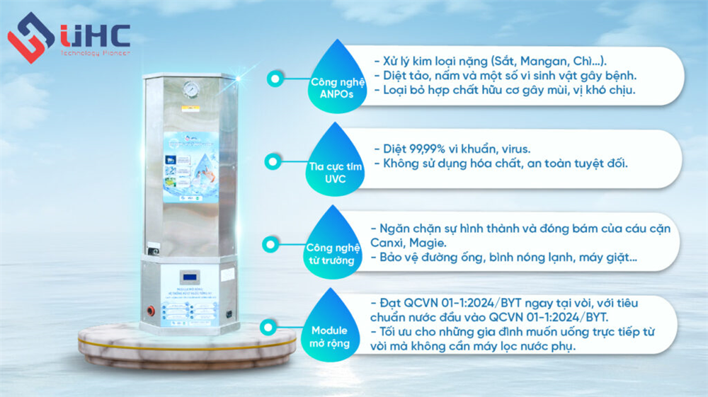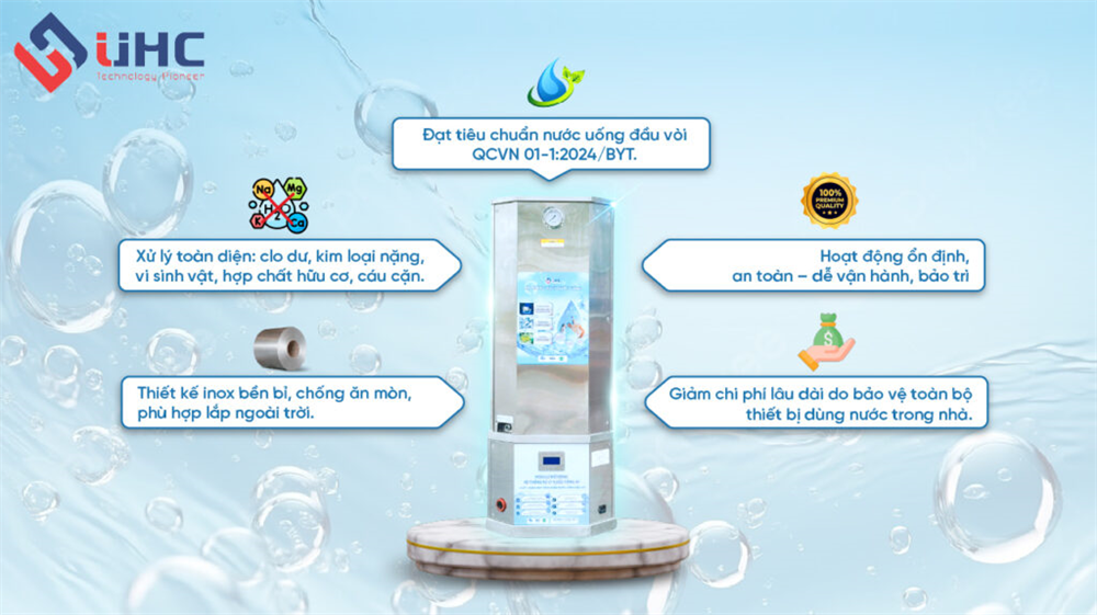 Nâng cấp hiệu suất xử lý, đảm bảo chất lượng nước đạt QCVN 01-1:2024/BYT ngay tại vòi, với tiêu chuẩn nước đầu vào QCVN 01-1:2024/BYT.