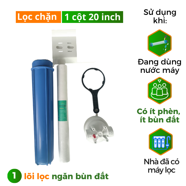 Thông tin sản phẩm Bộ lọc chặn đầu nguồn 1 cốc 1 lõi 20 inch