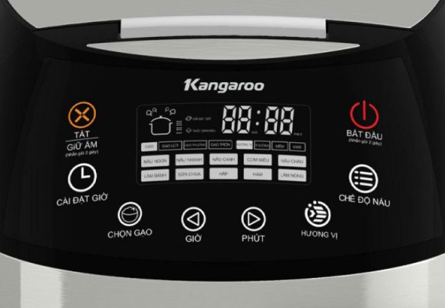 Sử dụng nồi cơm Kangaroo KG595P rất dễ dàng với màn hình LED hiển thị các chức năng bằng tiếng Việt. Bảng điều khiển cảm ứng điện tử hiện đại tiện thao tác. Bên cạnh đó, KG595P có chức năng giữ ấm và hẹn giờ nấu linh hoạt để nấu ăn dễ dàng hơn.